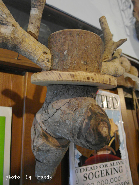 它是民宿二代主人橋澤先生利用樹木枝幹所製作的海賊王喬巴頭像,好新奇可愛,太厲害啦!
