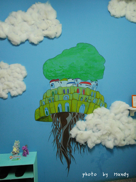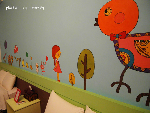 牆上的圖案也充滿著童話故事的色彩,小女孩的奇遇。也是主人手繪的,真有才華XDDD