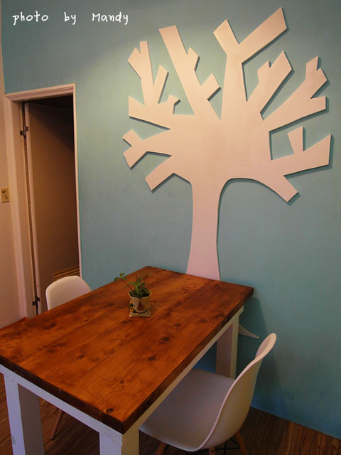 牆上的白色樹木還有下面那張有質感的桌子也是親手造的(好有質感的木工呀)