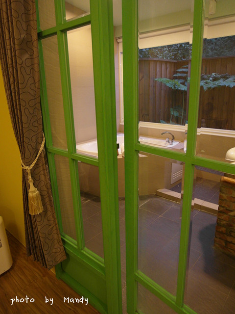 而且外面還可以看到造景,超棒的,如果沒有安全感也有簾子可以拉上,不過基本上外面的圍欄夠高,可以放心