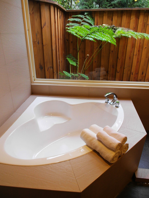 邊洗澡邊欣賞外面的景色,好有閒情逸致