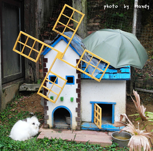 這個小屋子是民宿主人蓋給獅子兔住的,有看到左邊一橢白白的東西嗎,就是那隻大兔子XDDDD超卡哇伊!