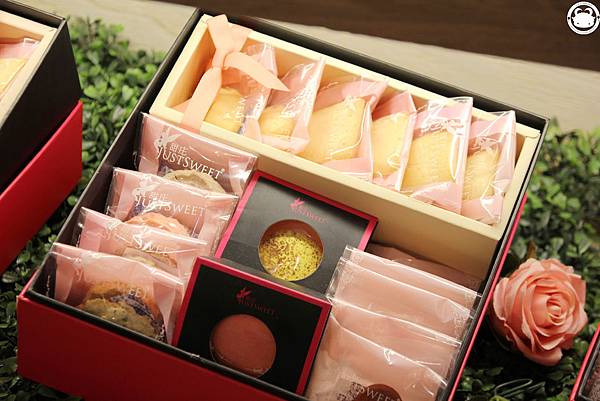 ▼另外【甜庄JUSTSWEET】跟一般喜餅店不一樣的地方是他們的禮盒"內容物"可以隨我們的喜好任意搭配,