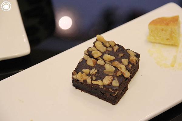▼布朗尼上頭點綴著核桃,降低了布朗尼主體的甜,