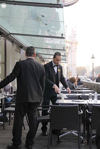 難怪!覺得不太習慣說~但我和ONE也認為可能因為我們是亞洲人,就比較不被重視(因為服務生還是有幫幾個歐美人士帶位...)我們詢問服務生,服務生也叫我們自己找位置(他們看起來很忙)就這樣餐廳裡面我們繞了一圈還是全部客滿,所以我們找到了戶外的位置(呼~總算)