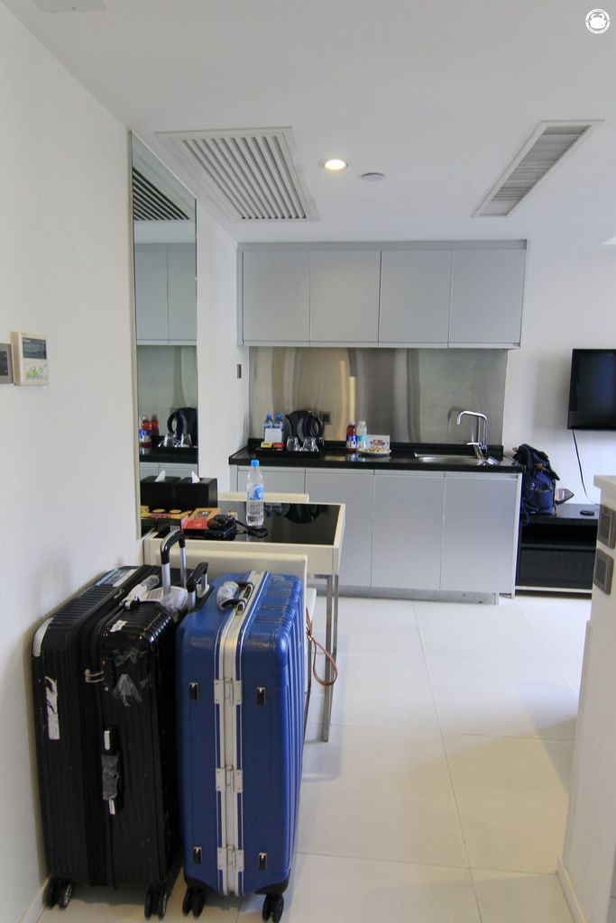 另外房間裡面空間設計得剛剛好,所以我們都是在客廳展開28吋的行李箱~