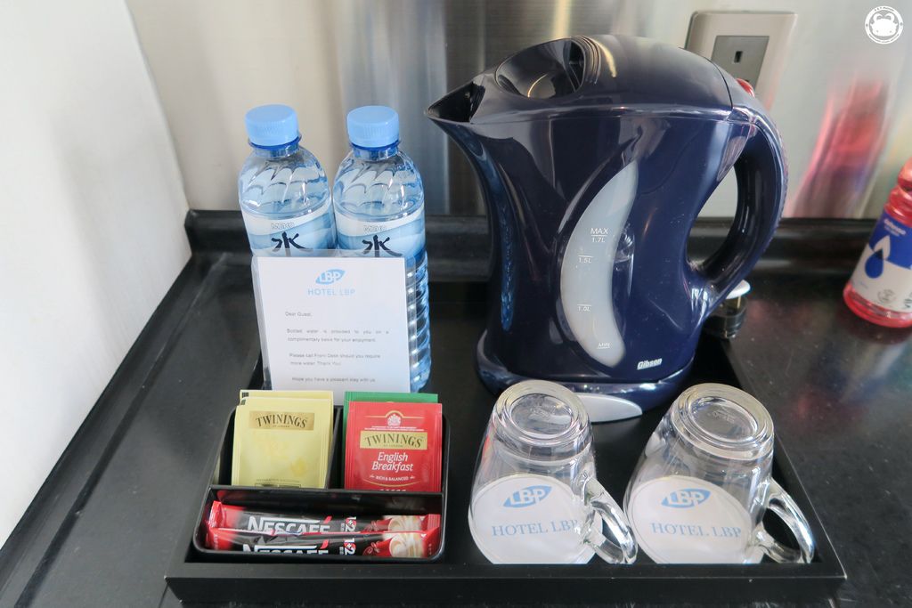 ▼提供兩瓶礦泉水、還有TWININGS茶包,蠻不錯的!!