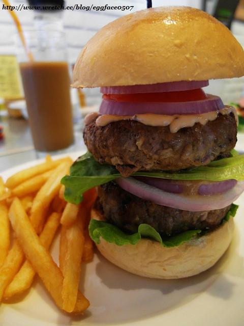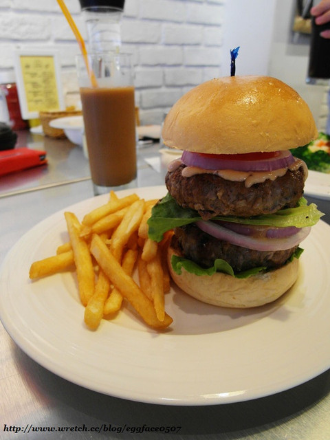 漢堡堆疊的好高阿XDDDD還有兩塊超厚實的牛肉排![]()