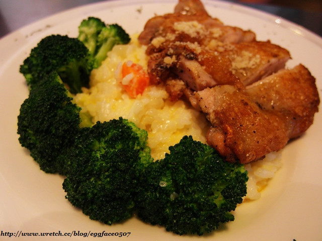 同事點的碳烤雞腿排燉飯(NT.270元) ( +88元多了湯品和可續杯飲料唷,友人選的是可樂)